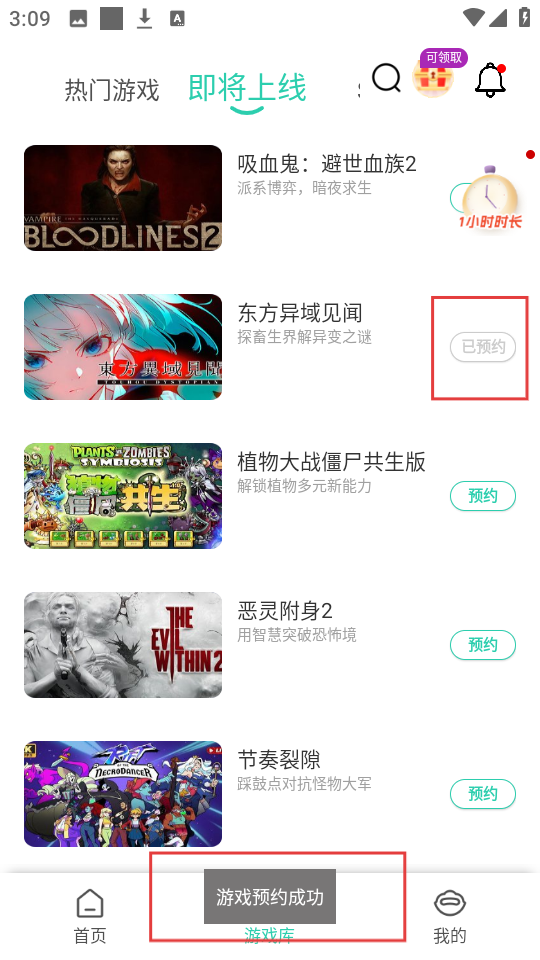 4、点【预约】后看到【已预约】和【游戏预约成功】提示,就预约好啦,超简单哦。