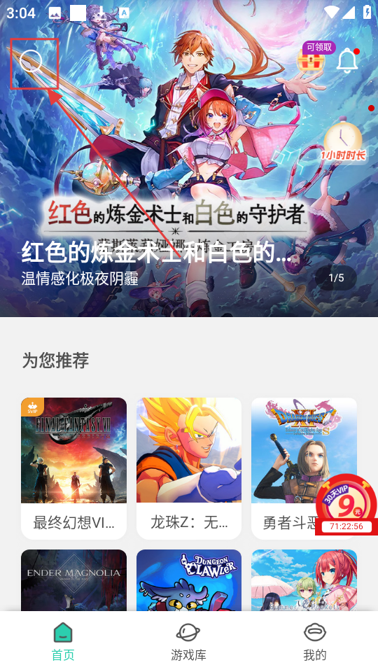 1、在首页点击左上角的搜索图标,就能进入搜索界面,开始查找你想玩的游戏啦。