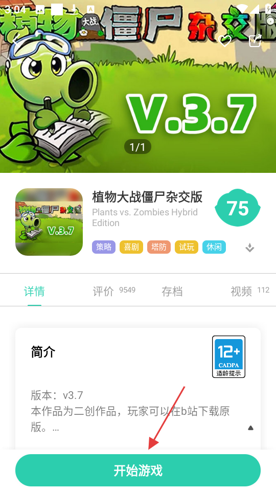 4、进入游戏详情页后,点击【开始游戏】,就能开启植物大战僵尸的游戏之旅啦。