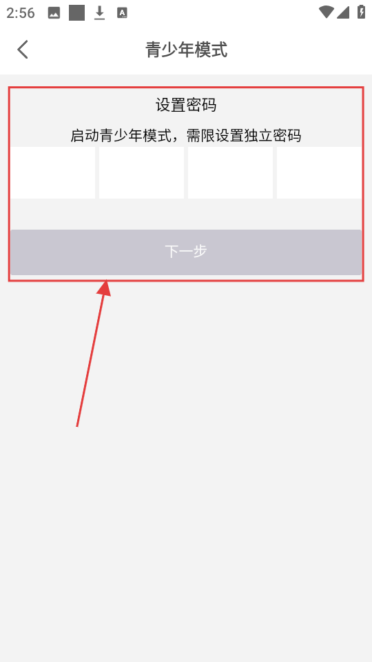 4、开启时设置独立密码,然后点【下一步】,就能完成青少年模式的开启啦。