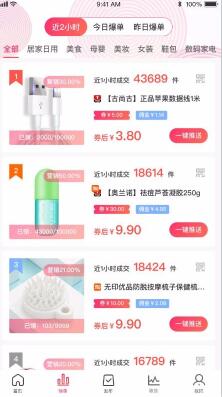 1、一目了然的榜单商品清单,该商品清单展示商品图片、优惠券、来源以及佣金等信息。