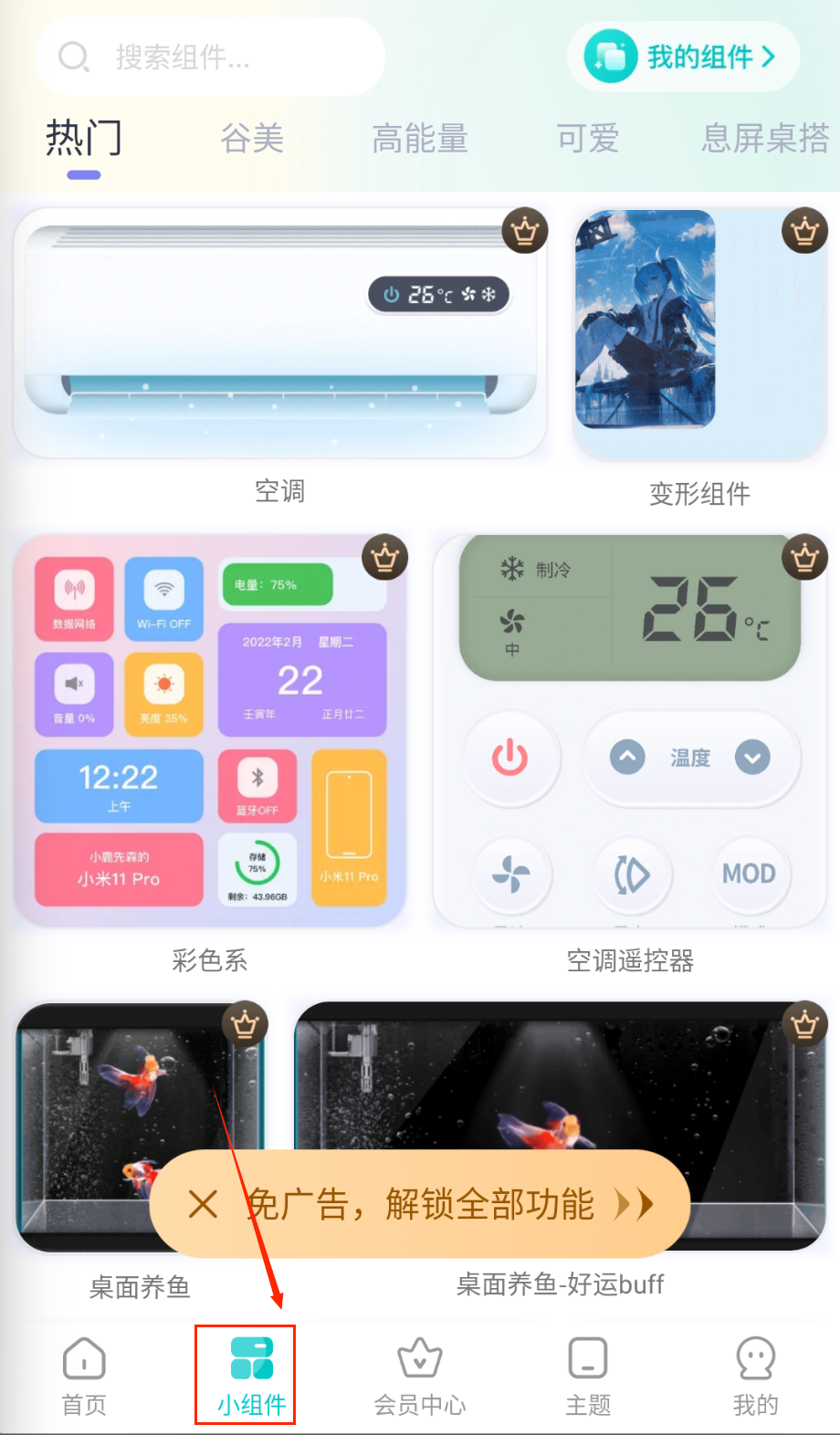 1、在小组件页面按分类浏览所需工具,热门推荐里都是实用精选,比如天气、快捷开关等,直接添加就能用。