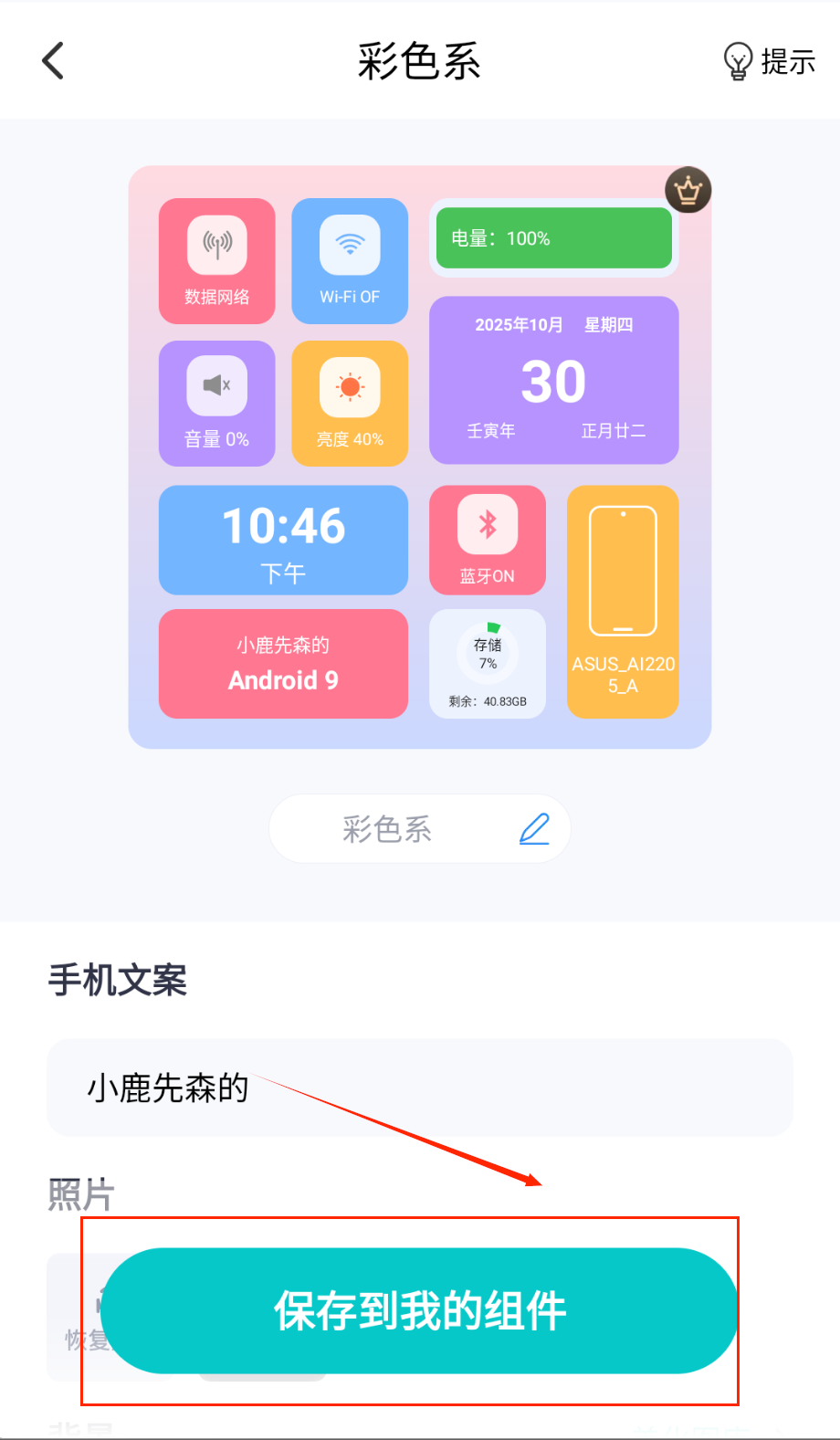 3、部分小组件支持自定义设置,比如更改颜色、显示内容等,花点时间配置能让组件更符合个人使用需求。
