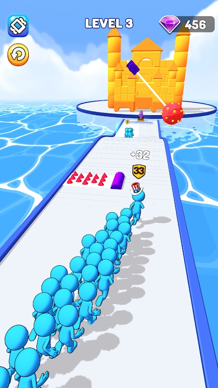 2、人肉大炮3D游戏的收集更多的橡胶人,增加你的大炮威力,尽量瞄准目标发射。