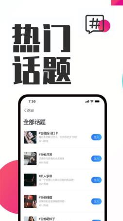 3、用户通过软件能够看到各种类型的热门话题,参与话题讨论更多的吉他有趣内容。