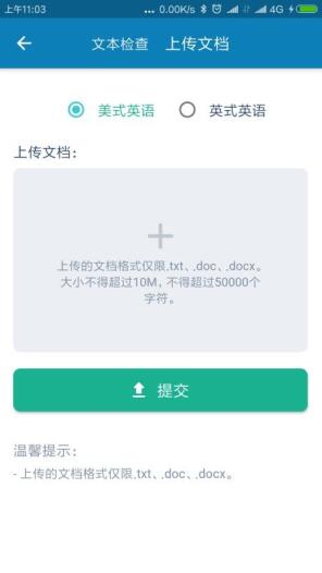 3、具备文档上传功能,您可以在这里一键上传自己的英文文档,方便您更好的学习。