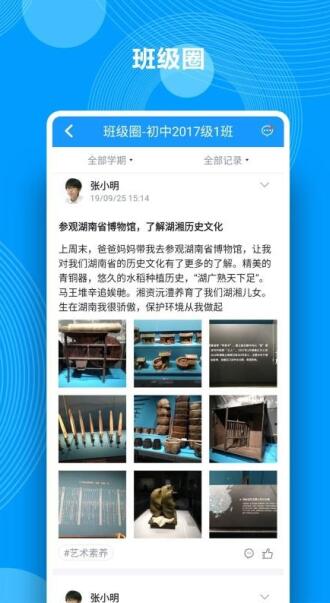 1、应用中有班级圈,用户在这里可以和其他班级成员在线互动交流,沟通各种内容体验。