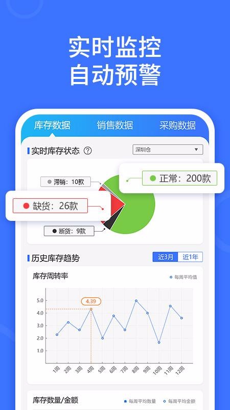 2、详细记录库存数据,了解库存情况,方便快速采购商品,使商品采购更准确,库存管理更简单。