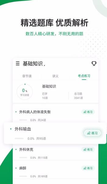 3、覆盖全面的重要考点,比如外科输血、外科休克以及麻醉等多种考点栏去观看。