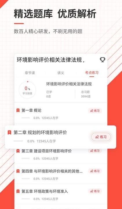 《环境影响评价师准题库》是一款专为环评员用户复习备考而设计的采集学习软件,可为用户提供海量丰富的题库资源,包括历年真题、模拟题库、日常练习、考点章节练习等。让您可以通过手机在这里在线练习题,更好地学习各种知识内容,不仅为用户提供海量题库资源,更轻松掌握更多知识点。
