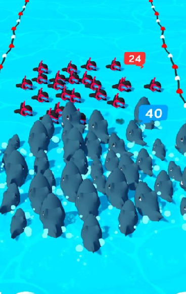 3、克隆尽可能多的鲨鱼,只有鲨鱼数量足够大才能获胜,轻松畅玩无限。