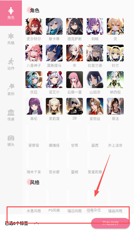 3、创作随性就好,在涂鸦少女或漫画少女里选个顺眼的模板,点一下键生成,作品就出来了。