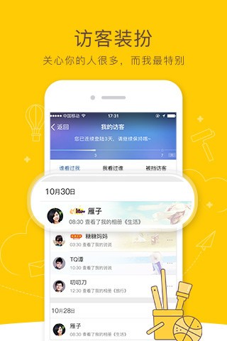 3、全屏背景:增加换装模块,实现空间动态背景多样化。 空间因人而异。