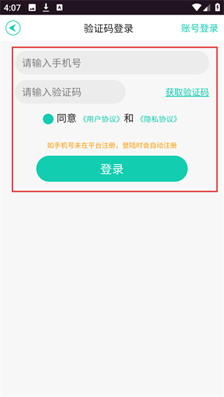 4、退出后会跳转到登录页,输入新手机号+验证码并勾选协议,点击【登录】就能切换账号啦。