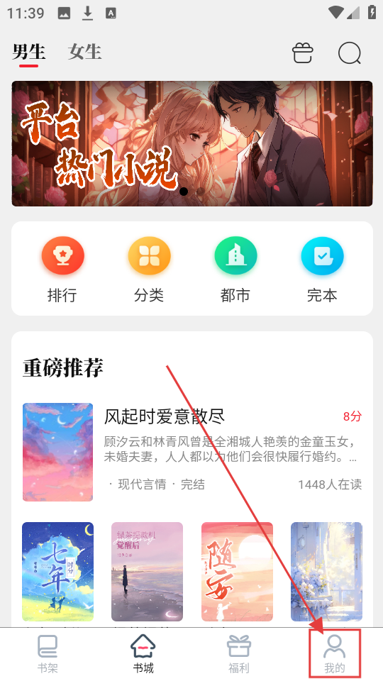 1、在书城页面,点击【我的】,可进入个人页面,查看个人相关功能啦。