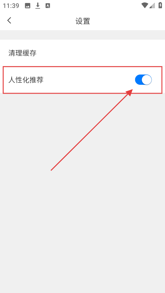 3、在设置页面,找到【人性化推荐】开关,点击可关闭该功能,减少个性化推荐啦。
