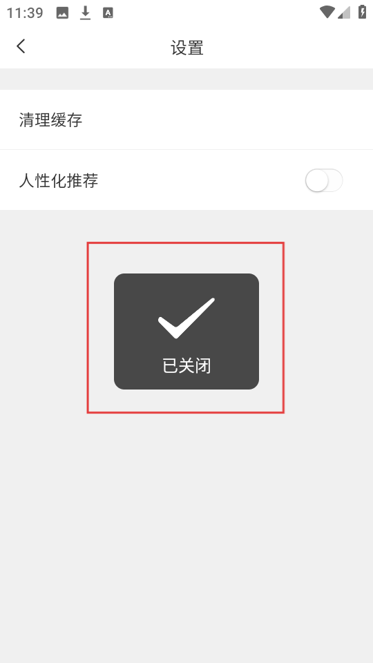 4、关闭【人性化推荐】后,会弹出【已关闭】提示,说明功能已成功关闭,设置生效哦。