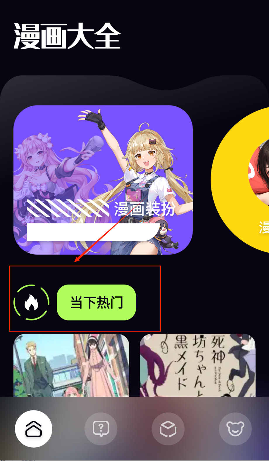 1、打开漫画大全软件首先看到当下热门推荐区域,展示日文漫画和人物风格漫画等作品,上方有漫画装扮等功能入口。