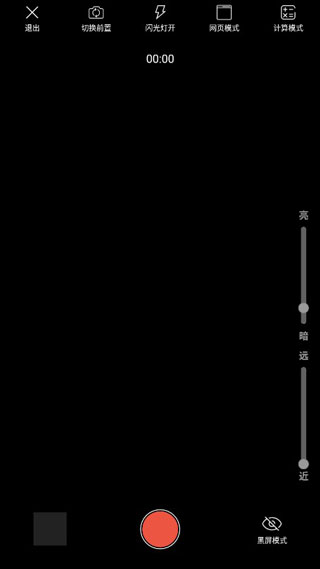 2、在拍摄页面中,点击右下角的“黑屏模式”按钮,就可以进入隐秘拍照的状态了。这个状态下手机显示为黑屏,按音量键“—-”号就会拍摄,通过返回按钮退出隐秘模式。