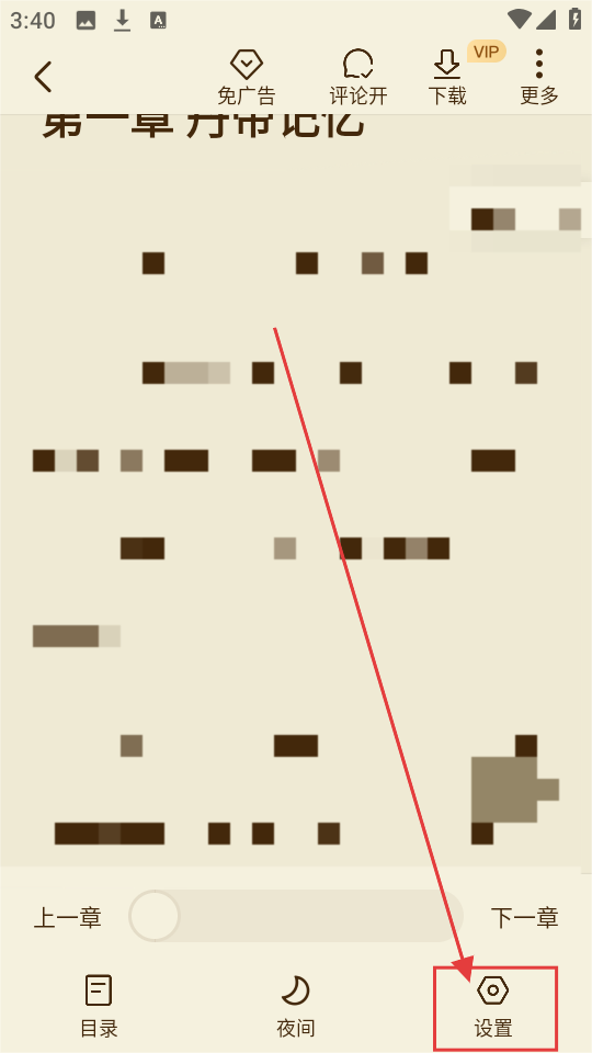 2、在小说阅读页面,若想进行阅读设置,点击【设置】,就能打开设置选项栏哦。