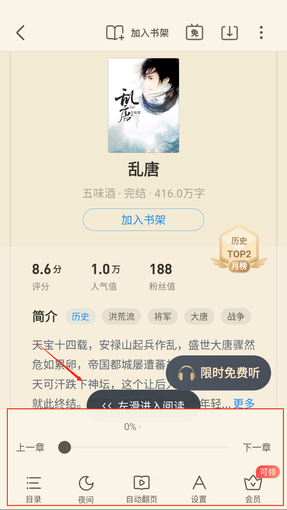 3、把自己喜欢的小说加入书架,保存更多的好小说,观看效率也更好。