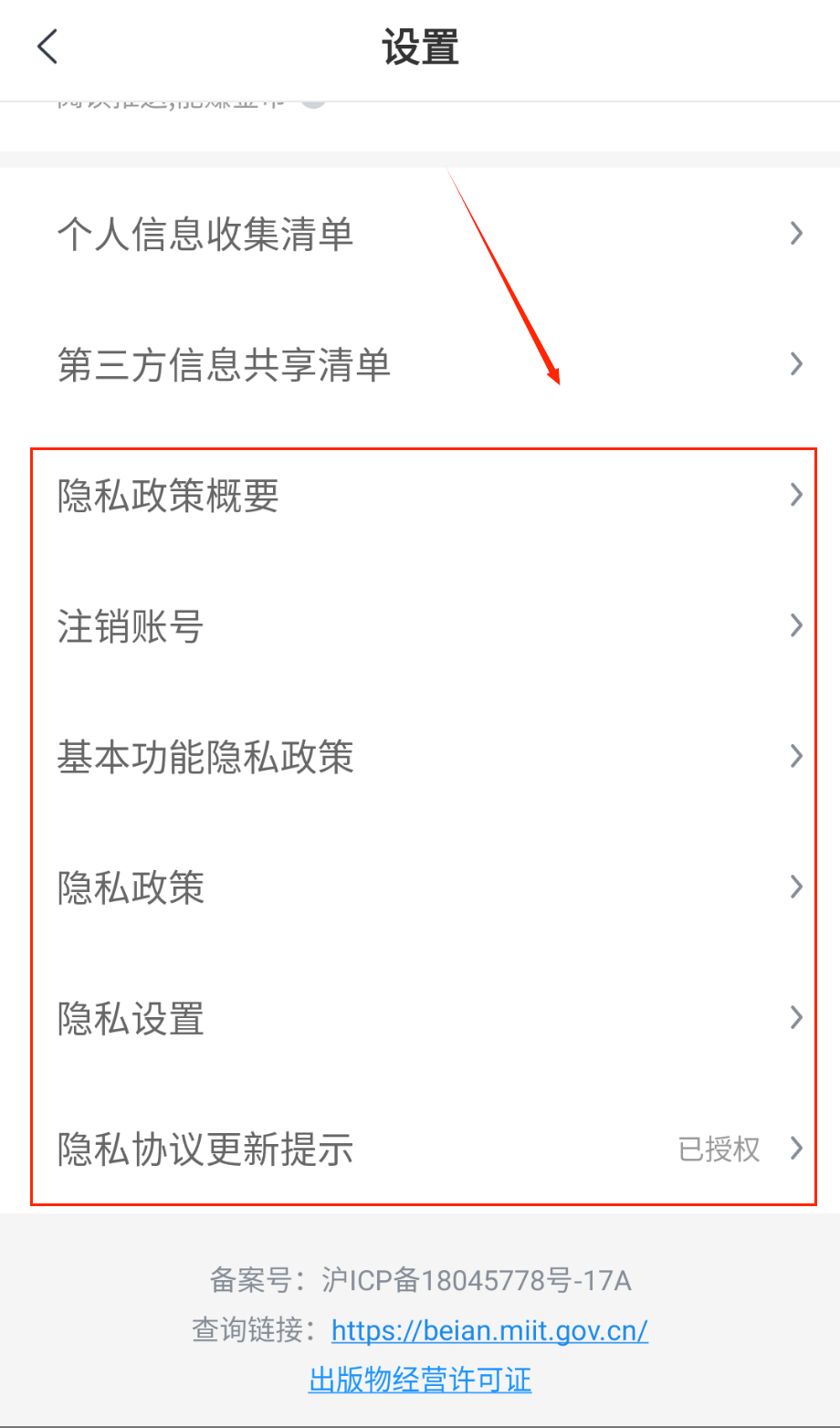 4、隐私设置可以管理个人数据,清除搜索记录和缓存,同时保护阅读隐私安全。