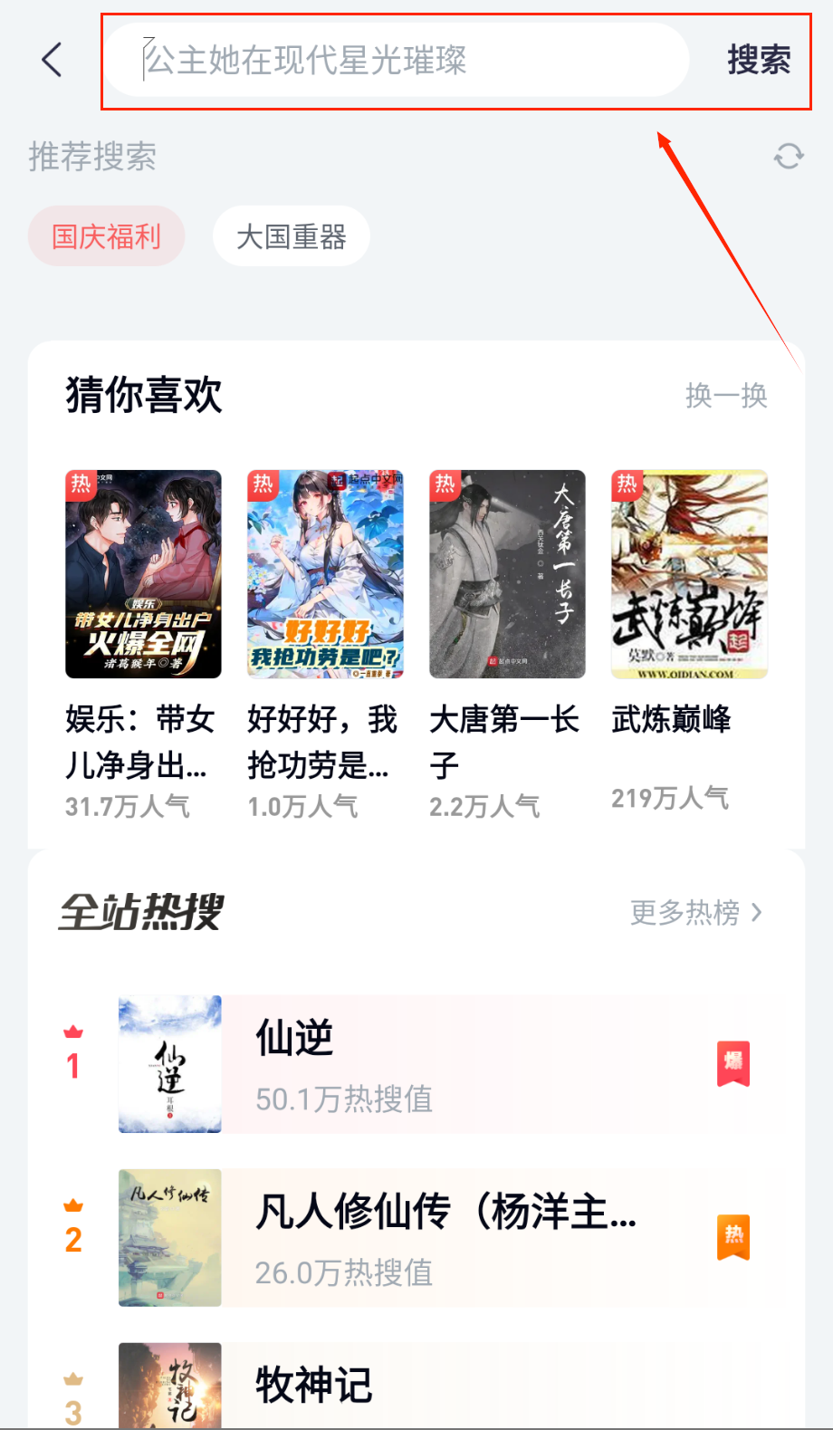 3、搜索时可以使用关键词联想功能,相关推荐会根据阅读历史智能推送可能感兴趣的小说。