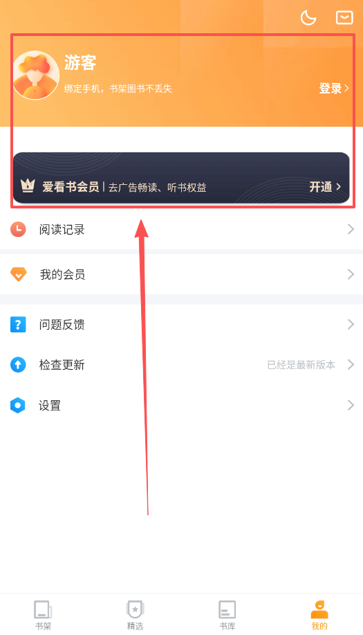 1、遇到书架图书消失的烦恼吗,先去“我的”页面登录账号绑定手机,这样无论换什么设备,你的书单都会稳稳地在那里。