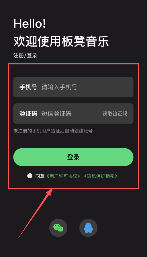 1、初次打开app,你需要完成手机号验证登录,输入号码获取短信验证码,并记得勾选用户协议框,这一步是使用所有功能的前提。