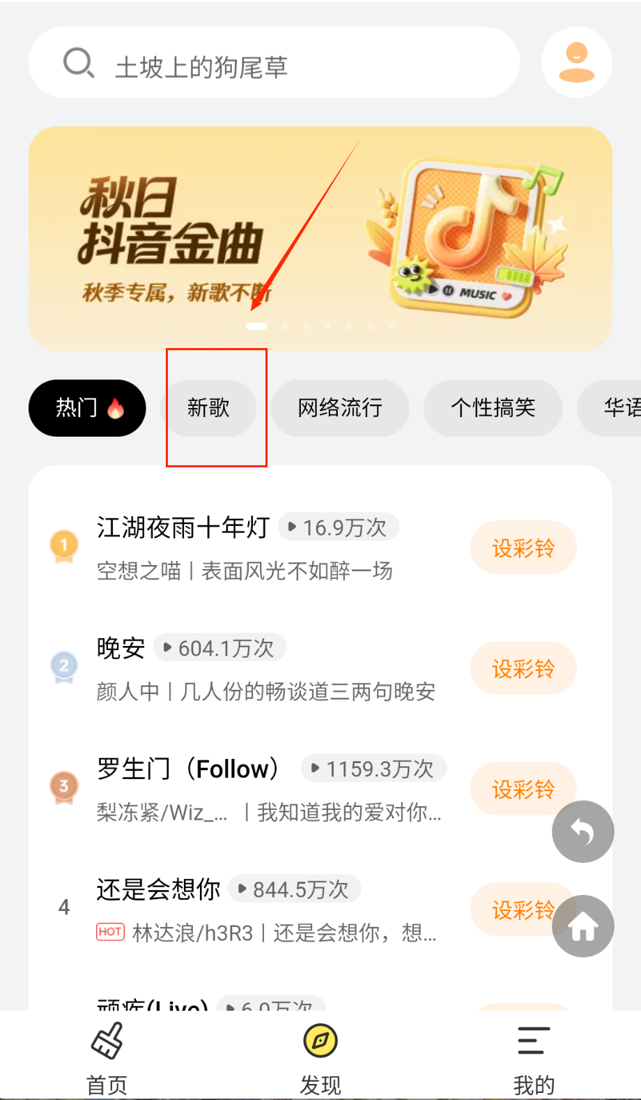 1、在音乐软件中多关注“新歌”分类,及时了解最新发布的歌曲,比如“顽疾(live)”播放6.0万次,可以发现新鲜内容哦。