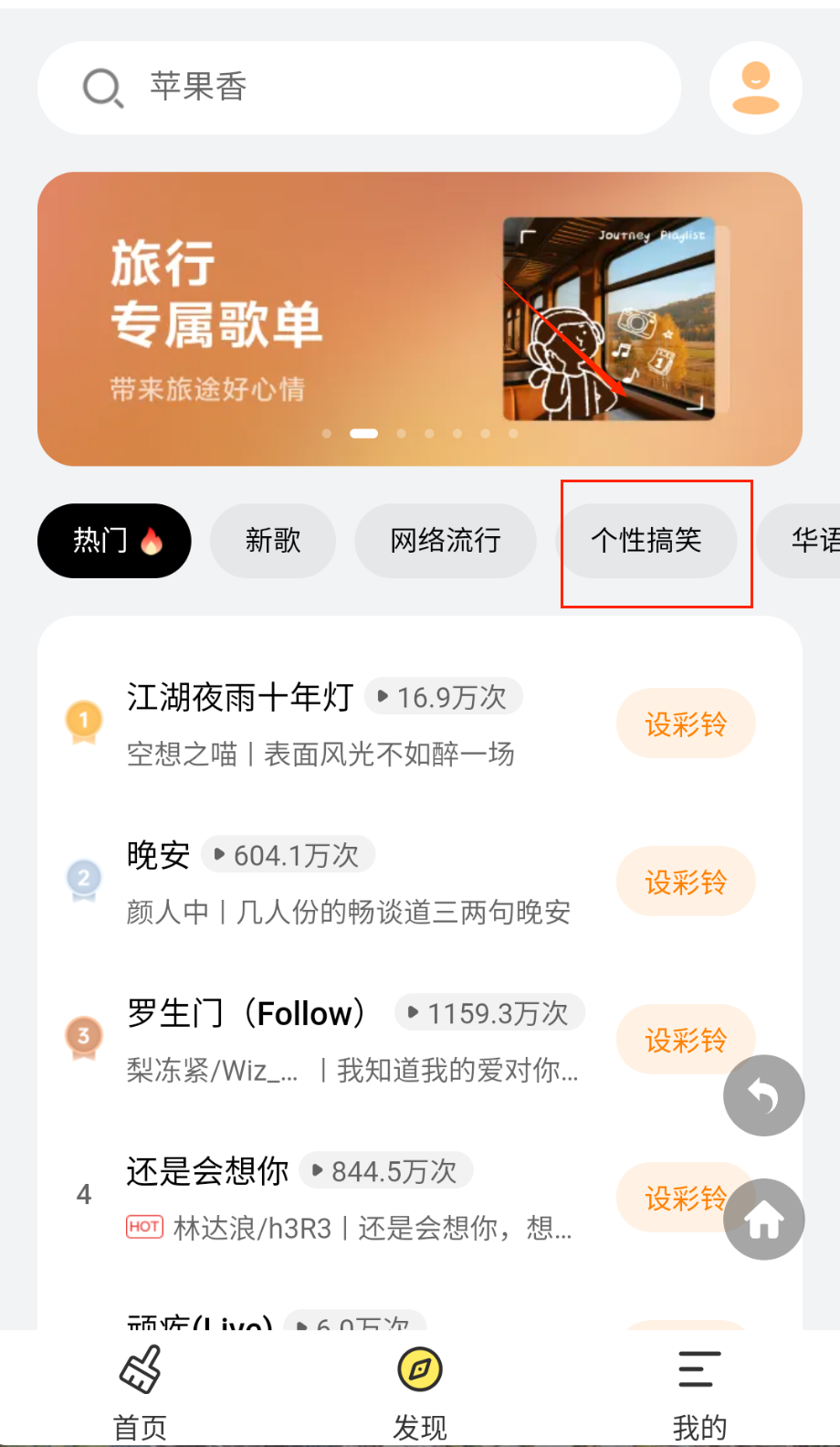 3、通过“个性搞笑”分类寻找轻松有趣的音乐,调节心情,丰富娱乐选择呢。