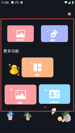 1、在功能页里选【图片美化】就能进入编辑界面,这里能给图片做各种美化处理,快选它开启创作吧。
