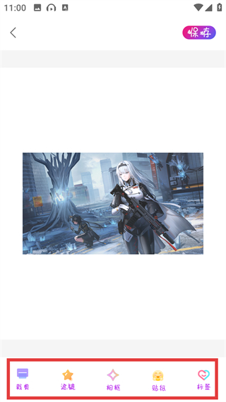 2、进入美化页后底部有【裁剪】等选项,选择需要的功能给图片进行美化吧。