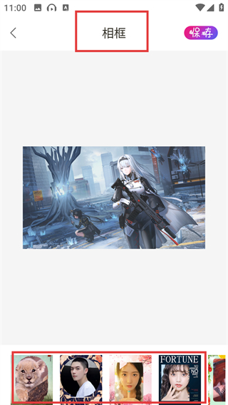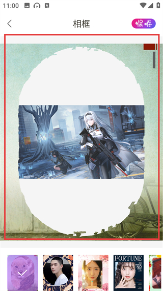 3、切换到相框功能页,在相框面板里挑喜欢的款式,比如带可爱图案的相框,点击后就能把它应用到当前图片上哦。