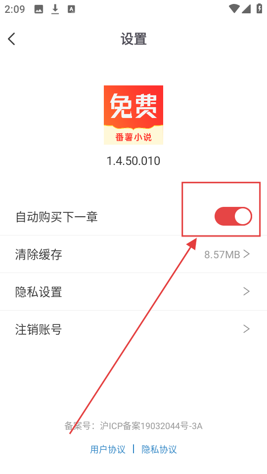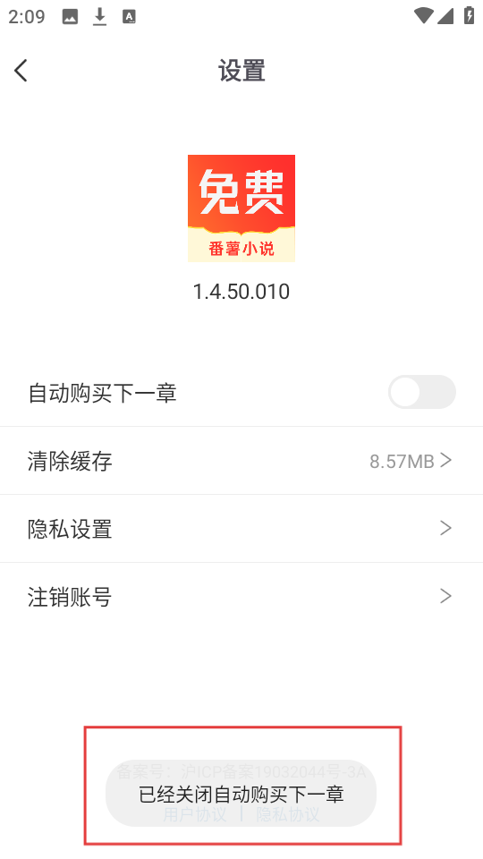 3、在设置界面找到【自动购买下一章】的开关,点击关闭,就能取消自动购买啦。