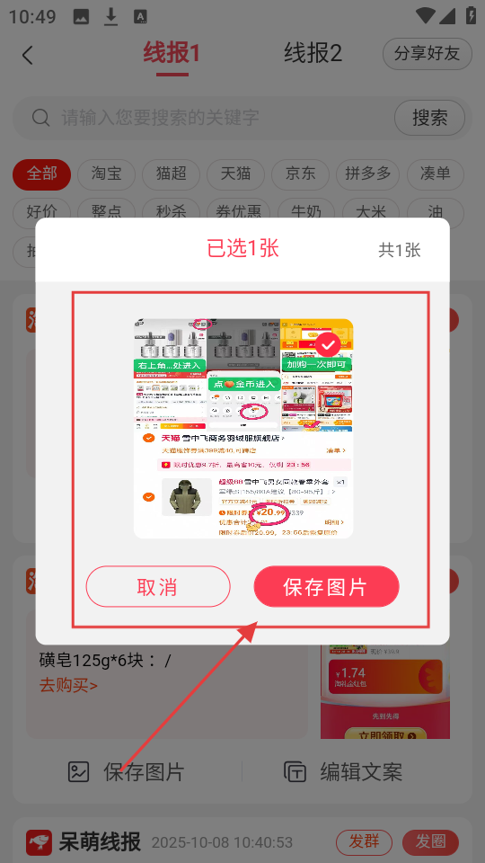 3、点击商品图片后,会弹出保存图片的窗口,我们点击【保存图片】按钮,就能把商品图片保存下来,方便后续查看啦。