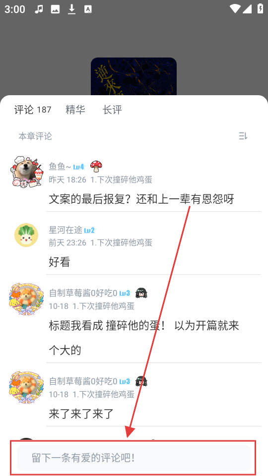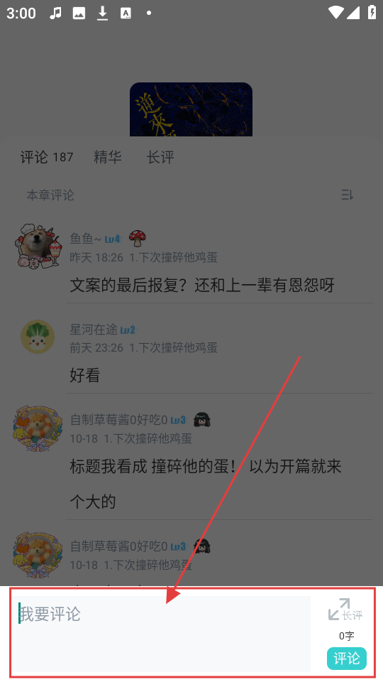 3、在评论区,点击输入框,输入你想留的有爱评论,就能分享你的阅读感受啦。