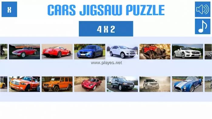 1、汽车拼图谜题游戏的各种拼图图案,你需要快速观察每一块的差异。