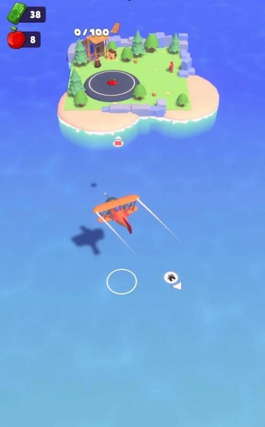 1、摇杆控制人物在岛上收集材料,兑换金币建造飞机,登上直升机飞走。