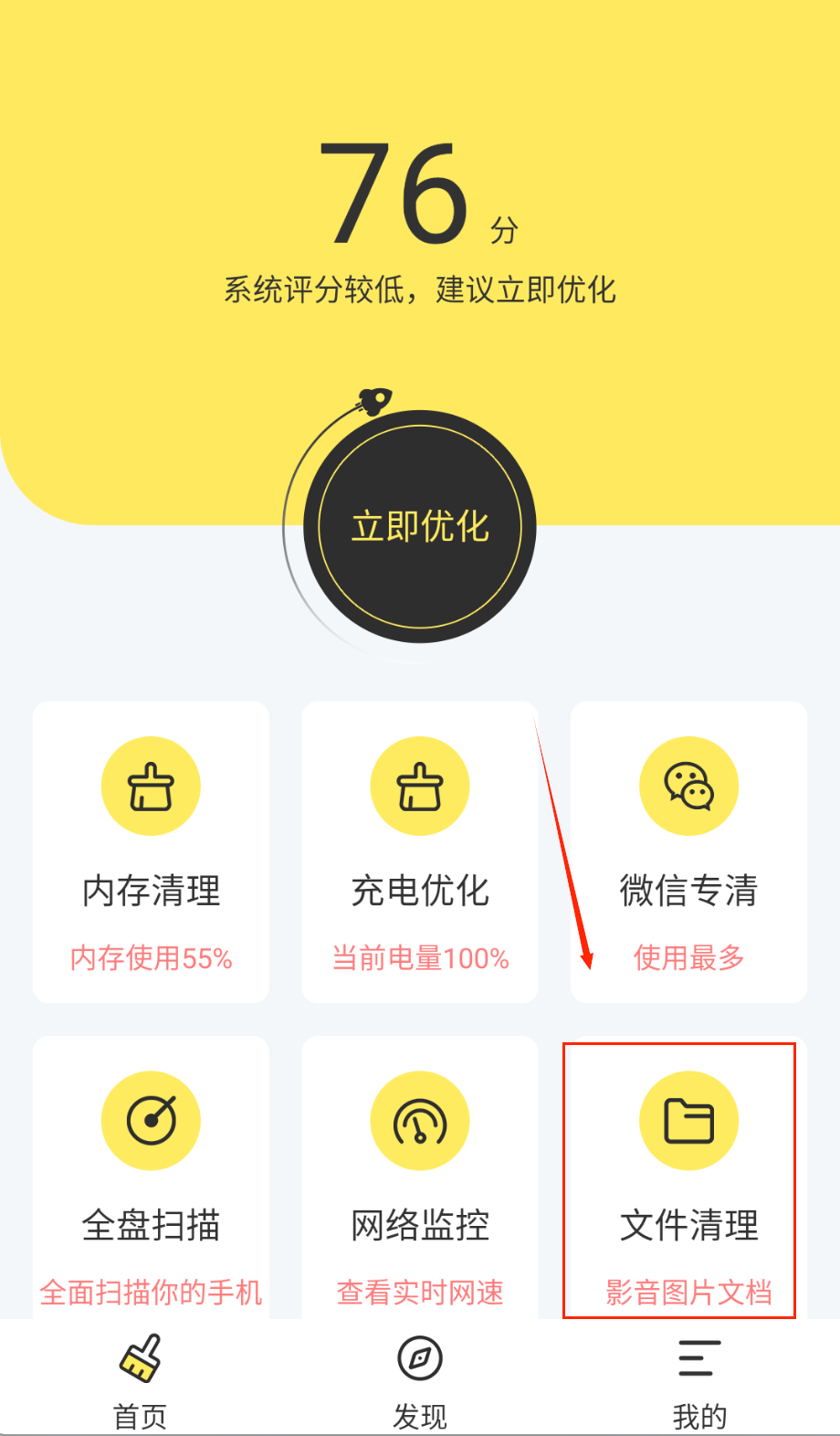 2、使用“文件清理”模块管理影音、图片等文件,分类删除不需要的内容,优化手机存储呀。