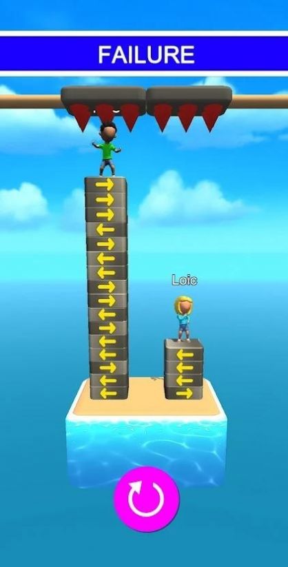 3、如果滑动错误或反应太慢,脚下的积木会不断增长,直到按下顶部按钮结束。