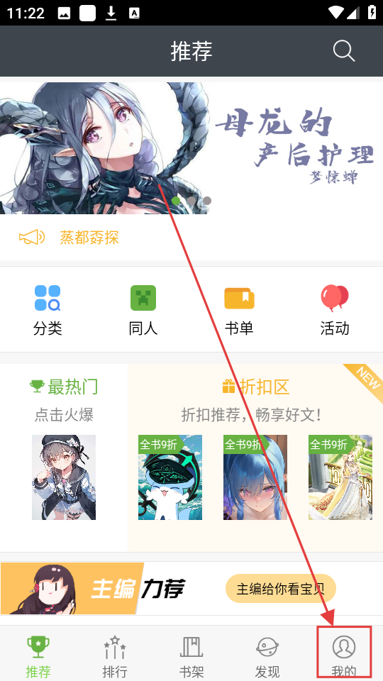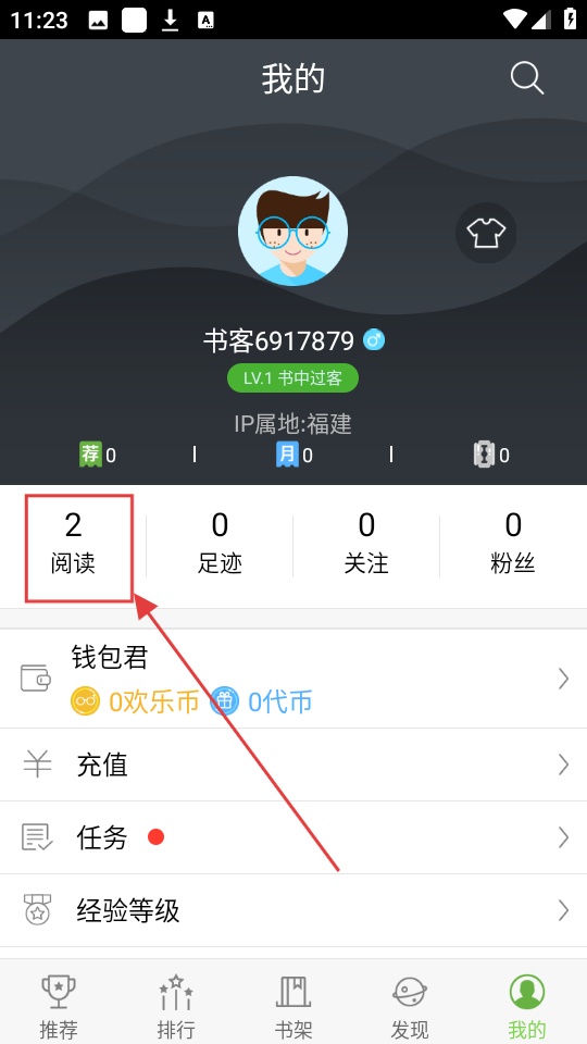 1、在软件推荐页面,点击【我的】,可进入个人页面,查看个人阅读等相关信息啦。
