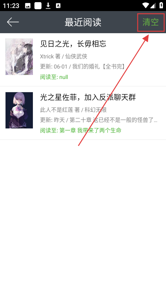 3、在最近阅读页面,点击【清空】,可清空最近阅读的书籍记录,保持页面整洁啦。