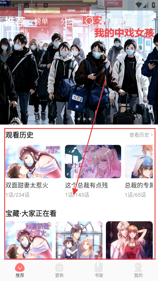 1、在推荐页看到感兴趣的漫画,赶紧点击进入,继续你的阅读之旅吧。