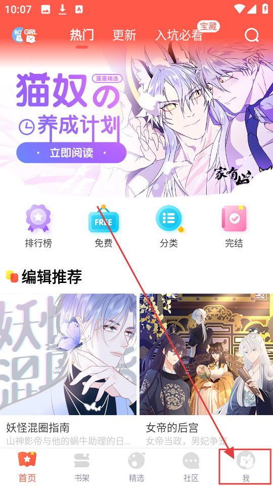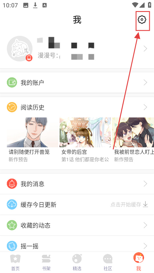 1、打开漫漫漫画APP,在首页点击右下角【我】,进入个人页面,准备进行设置操作啦。