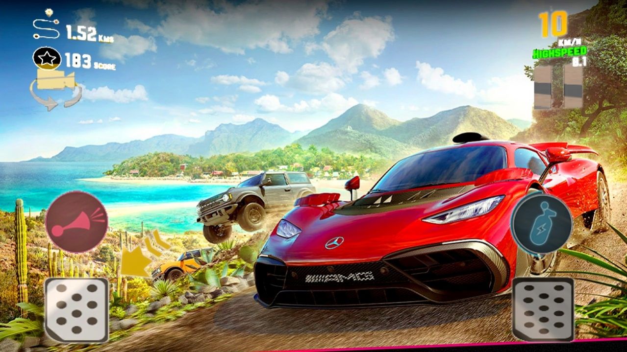 1、玩家能够在游戏当中享受到极为刺激愉快的赛车驾驶竞速游戏体验。