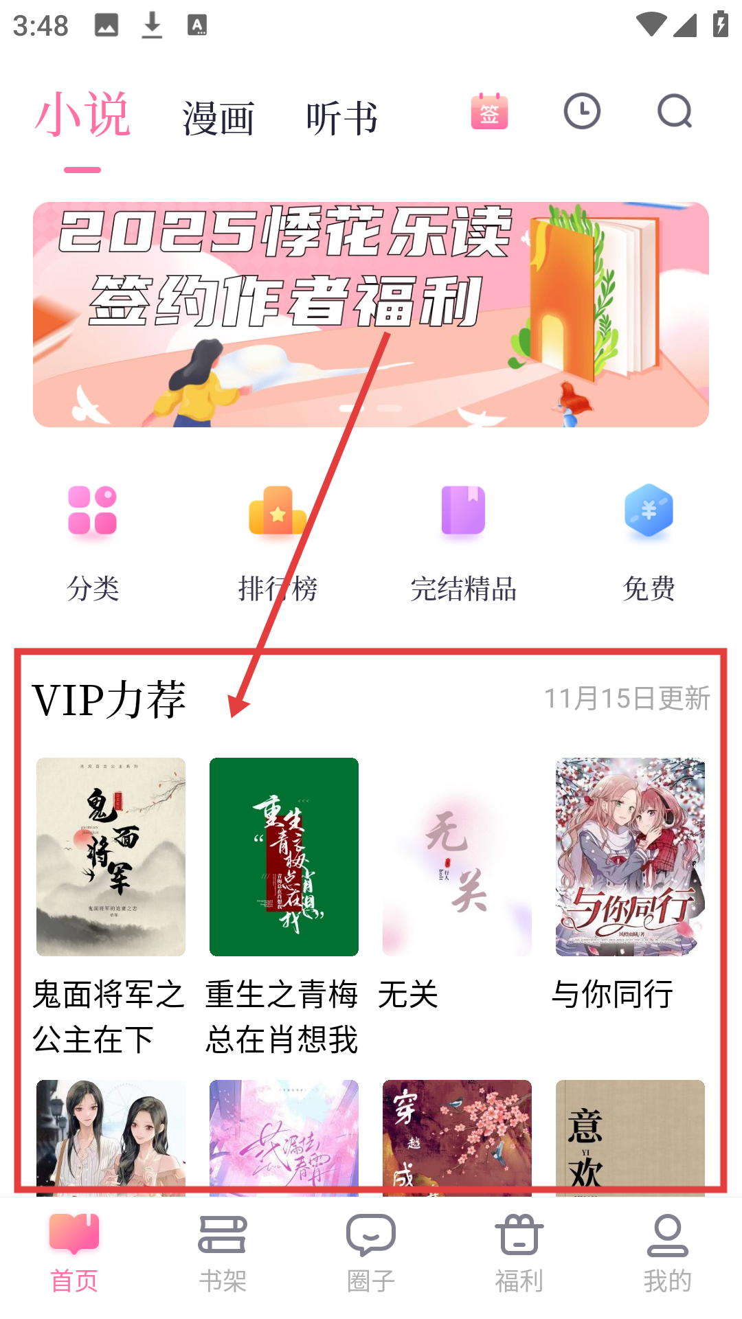 2、悸花乐读无限书币每天为你挑选你喜欢看的书,这样你可以更好地告别缺书的烦恼。