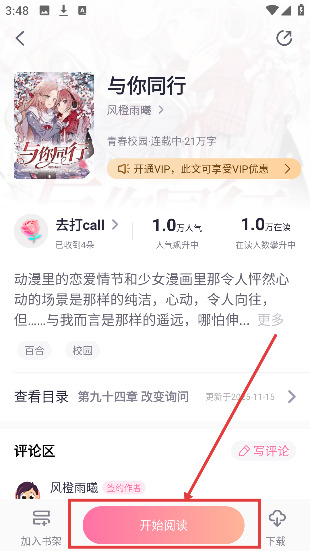 2、在书籍详情页,点【开始阅读】,能进入阅读页面开始看书啦。