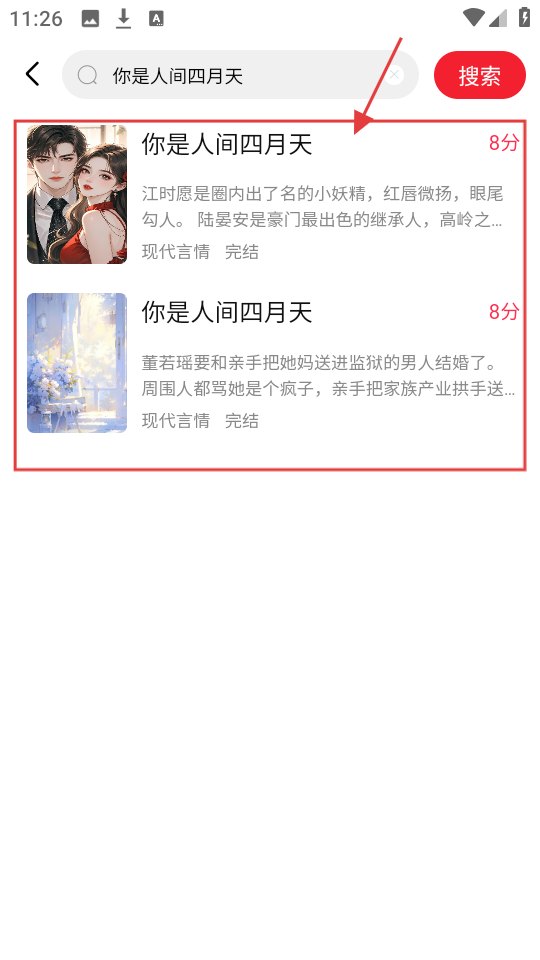 2、进入搜索页面后,在搜索框输入书名如【你是人间四月天】,点击搜索,可查看相关书籍结果哦。