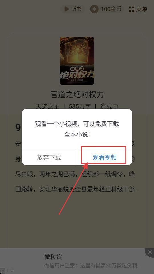 3、在下载选项中,点击【观看视频】,观看小视频后可免费下载全本小说啦。